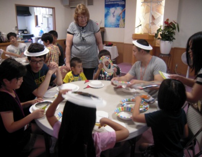 毎年夏、アメリカから数名の青年来日し、7日間の英語によるディキャンプを行っています。毎日彼らと英語でコミュニケーションしながらふれあうことで、自然に国際感覚を身につけます。英会話はもちろんのこと、アメリカの歌やゲーム、クラフトなどを通して楽しくアメリカを体験します。